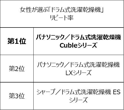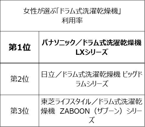 ◆女性が選ぶ「ドラム式洗濯乾燥機」ランキング、利用率1位は「パナソニック/ドラム式洗濯乾燥機 LXシリーズ」