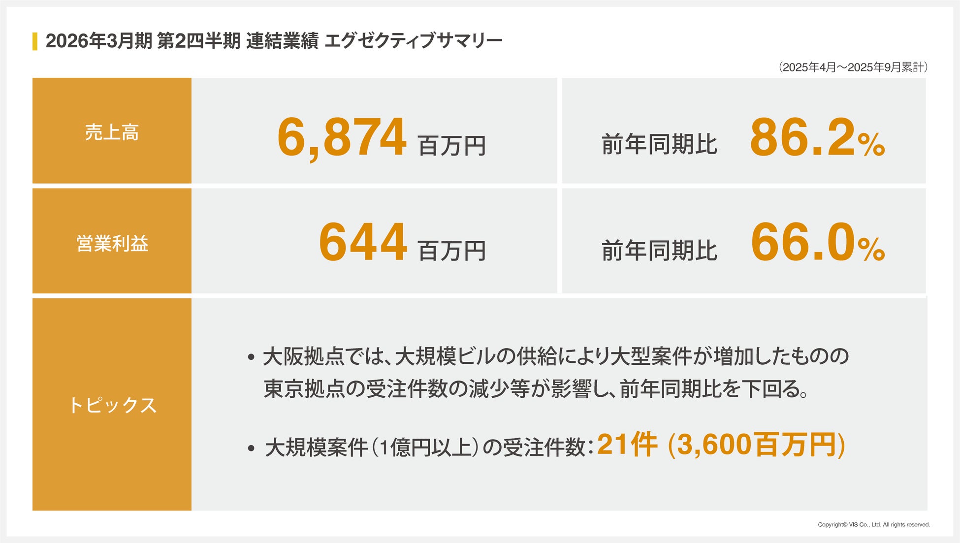 <ヴィス>減収減益も、受注高、受注残高は第2四半期として過去最高を更新(2026年3月期 第2四半期決算を発表)