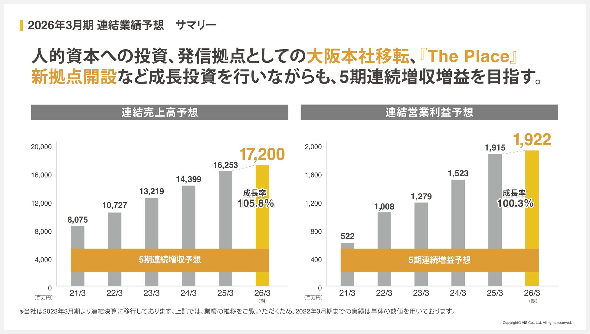 第1四半期に続き第2四半期も減速傾向が続いたものの、人的資本への投資、大阪本社の移転、『The Place』の新拠点開設など、成長に向けた戦略的投資を継続しています。これらの取り組みを通じて、5期連続の増収増益を目指し、今期は売上高17,200百万円、営業利益1,922百万円の達成に向けて引き続き取り組んでまいります。