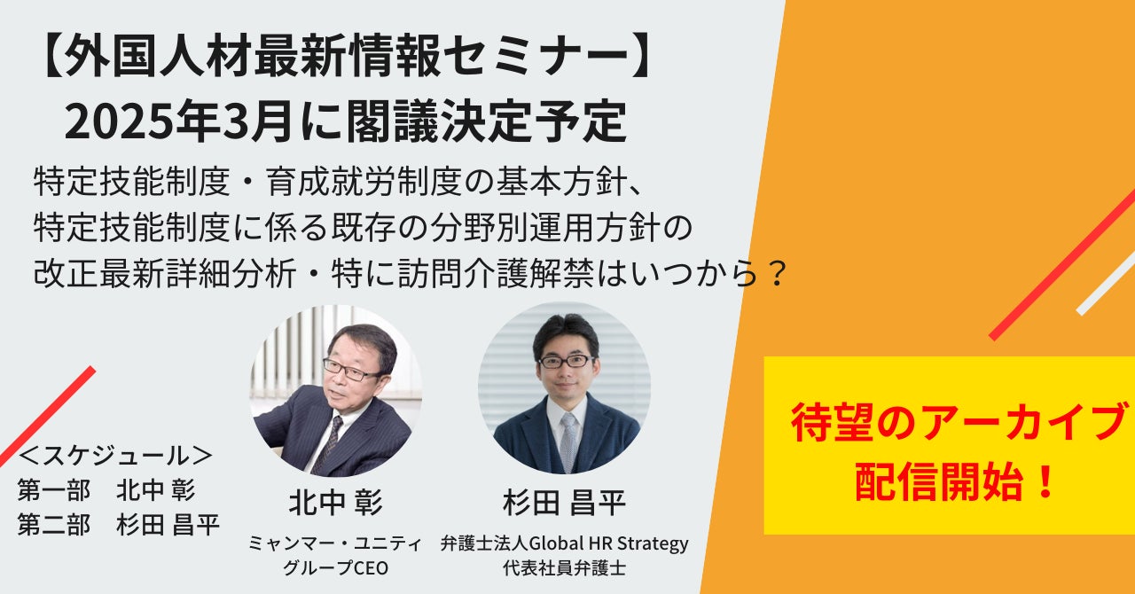 【大人気セミナーを無料公開】「外国人材最新情報セミナー」2025年3月に閣議決定予定:特定技能制度・育成就労制度の基本方針について解説