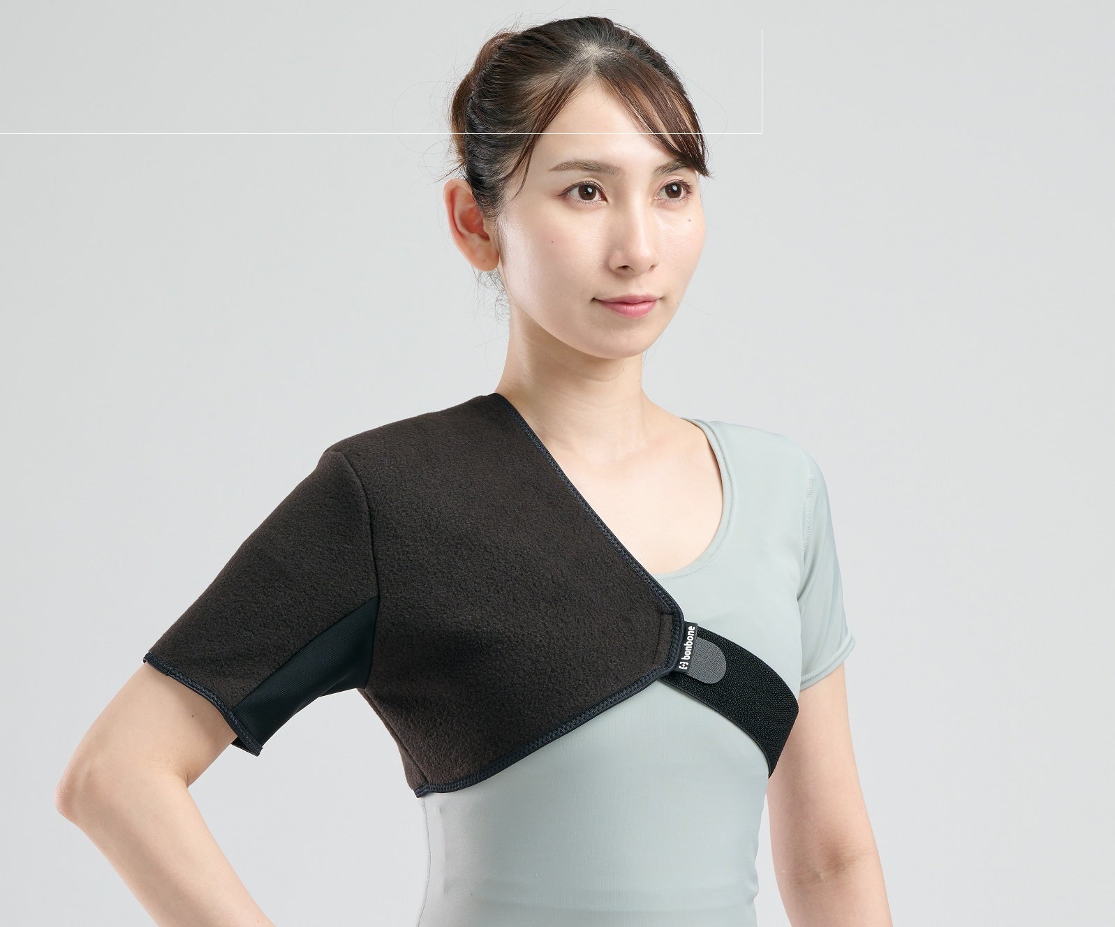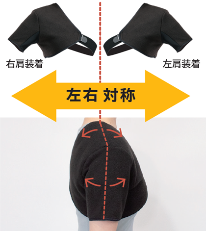 肩のラインを中心に左右対称に設計しているため、左右どちらに装着しても違和感なくご使用いただけます。繰り返す肩のトラブルにも対応可能です。
