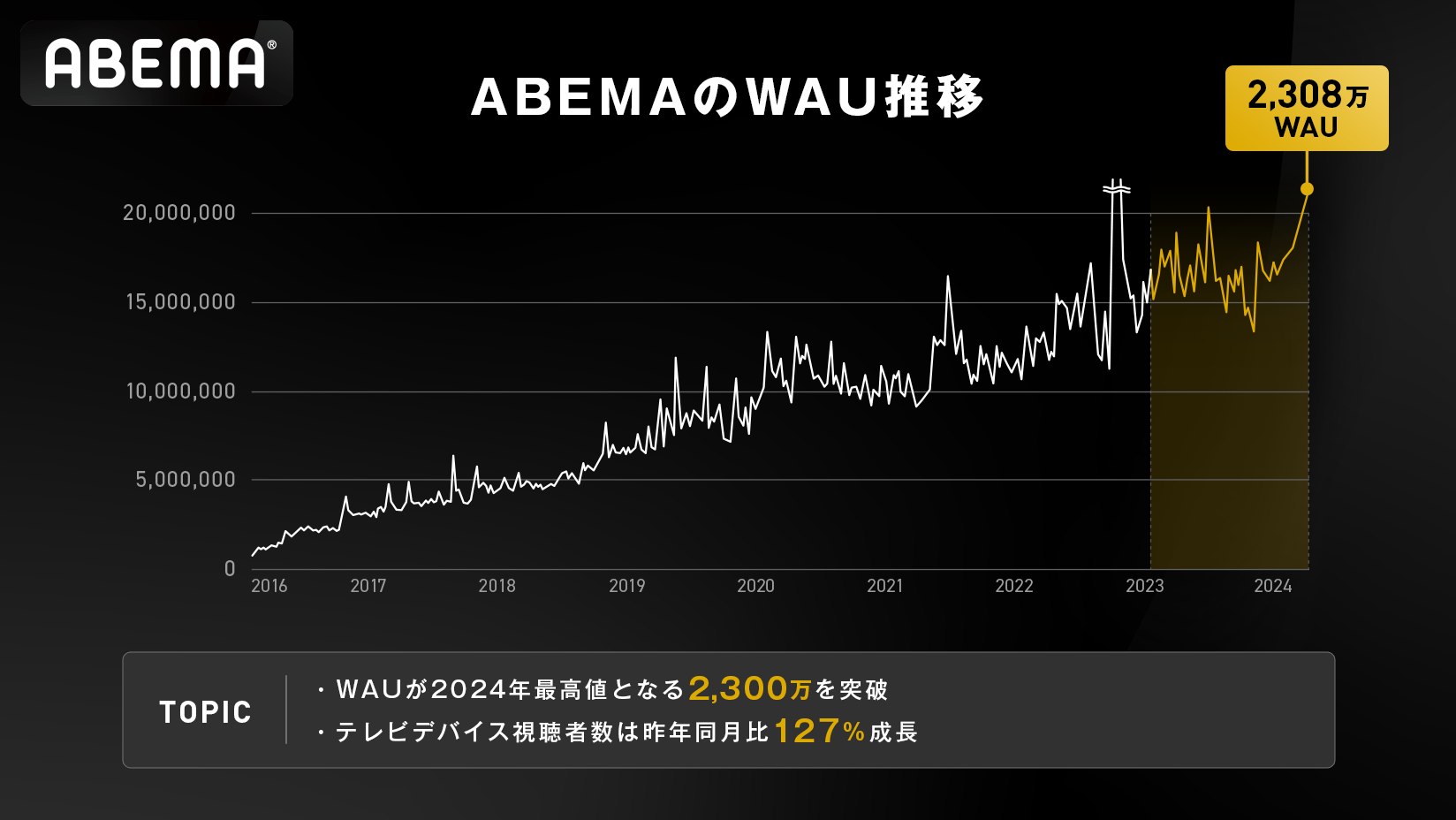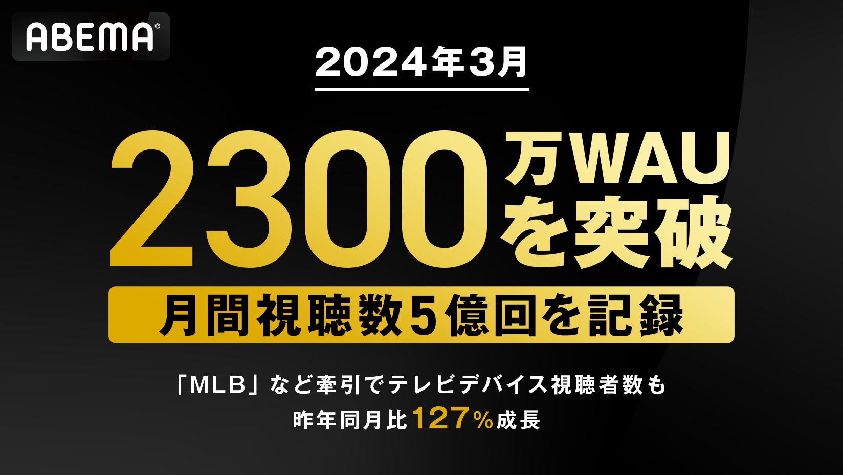 新しい未来のテレビ「ABEMA」、週間視聴者数が2,300万を突破!2024年3月の月間視聴数も5億回を記録