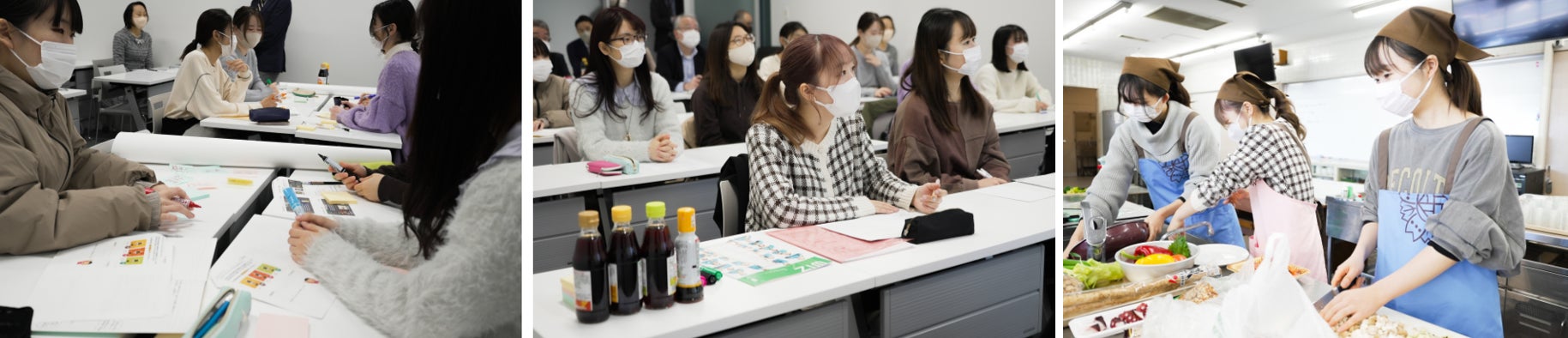 その後、約半年にわたり、学部・学科を越えた授業として『課題解決型ワークショップ にっぽん食を考える』を実施しました。様々な講師が登壇して“食と健康”、“おいしさの考え方”、“持続可能な食”、“若者の考える食”など、食を多角的に学び、“にっぽん食”を探求しました。