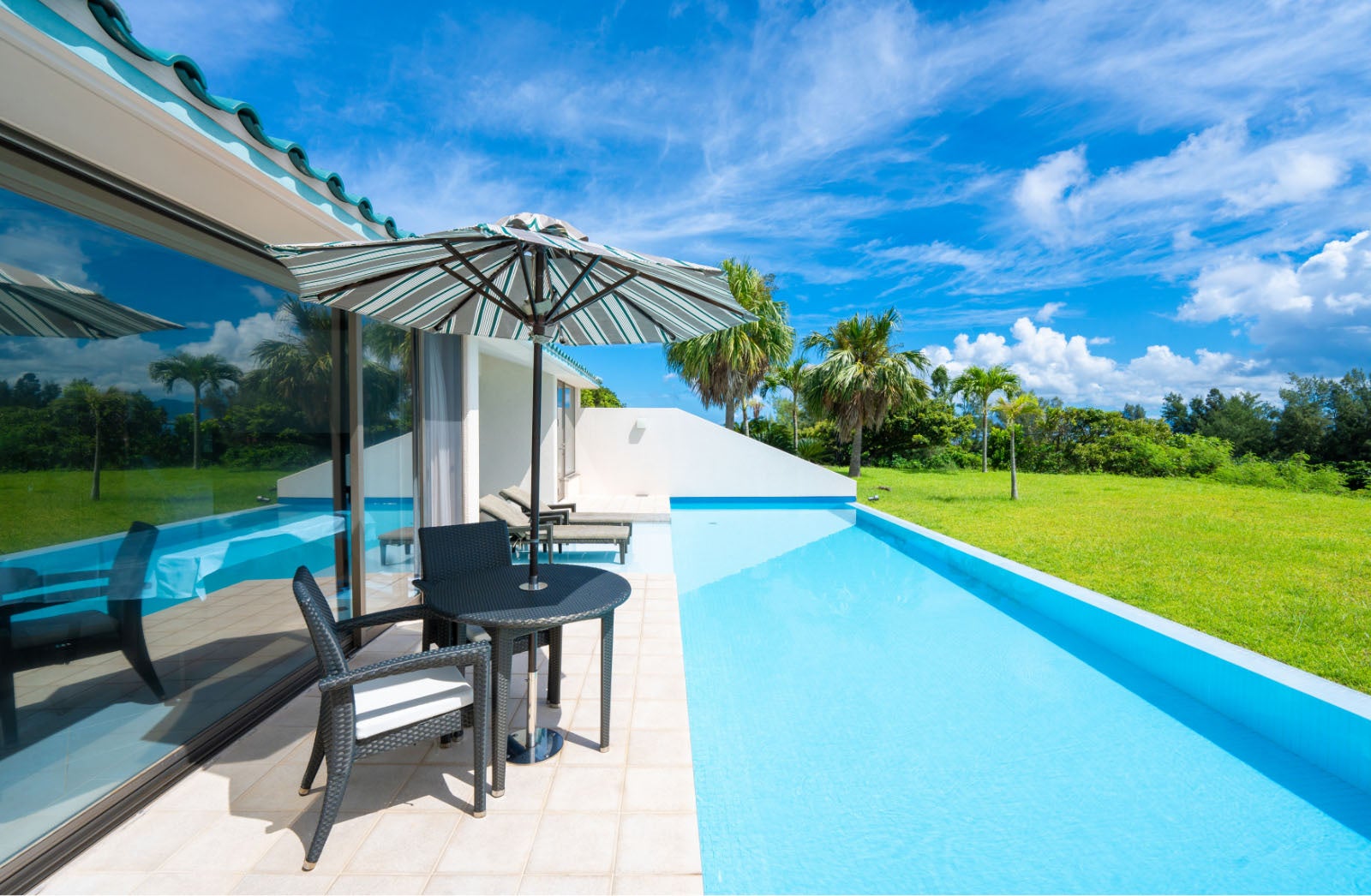 恩納ブルーの海を堪能するビューバス付きのオールスイートヴィラです