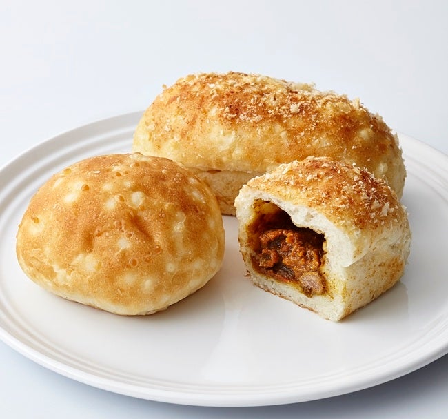 アルファ米を40%使用したパン生地に、白だしを混ぜたカレーを包み、表面にはパン粉と鰹節とエダムチーズをかけて焼成しています。