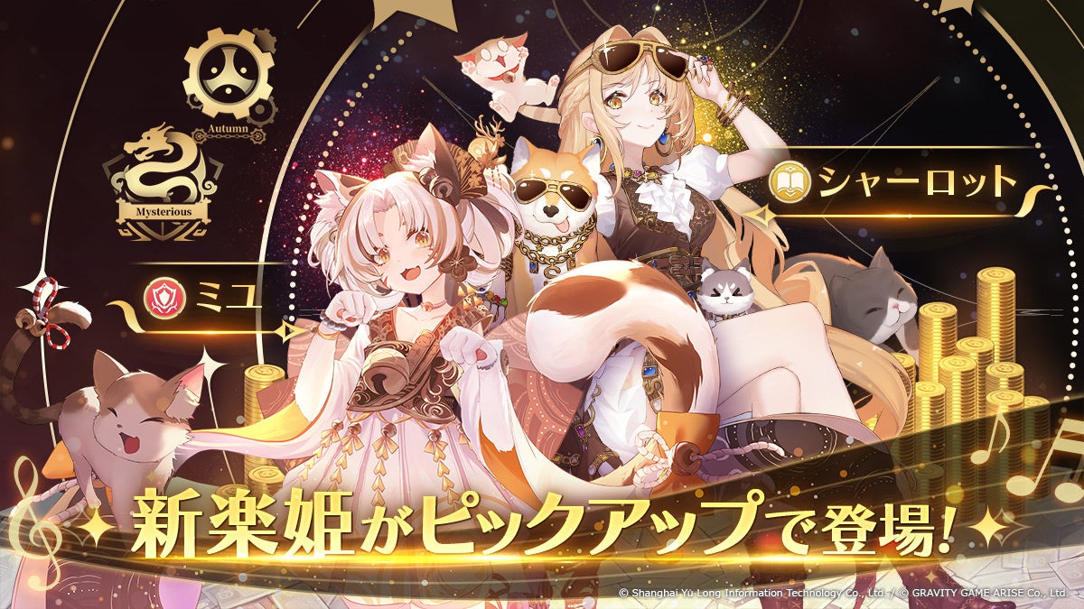 ねこ耳と大きなしっぽが特徴の楽姫「ミユ」と、世界一の大富豪の楽姫「シャーロット」が新たに登場します。