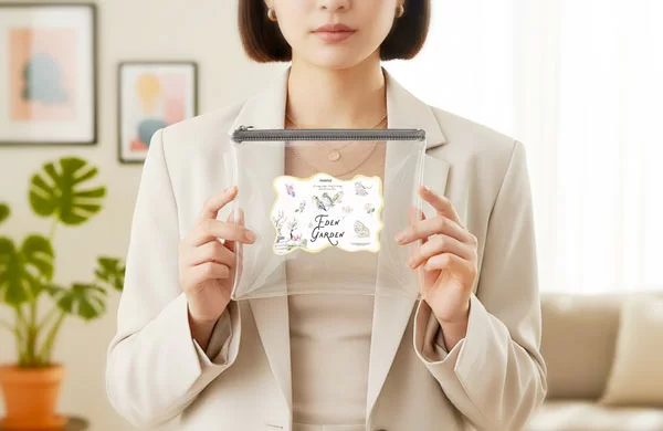 透明PVC素材を採用し、水濡れに強く、日常使いにも安心。柔軟性がありながらしっかりとした作りで長く愛用できます。