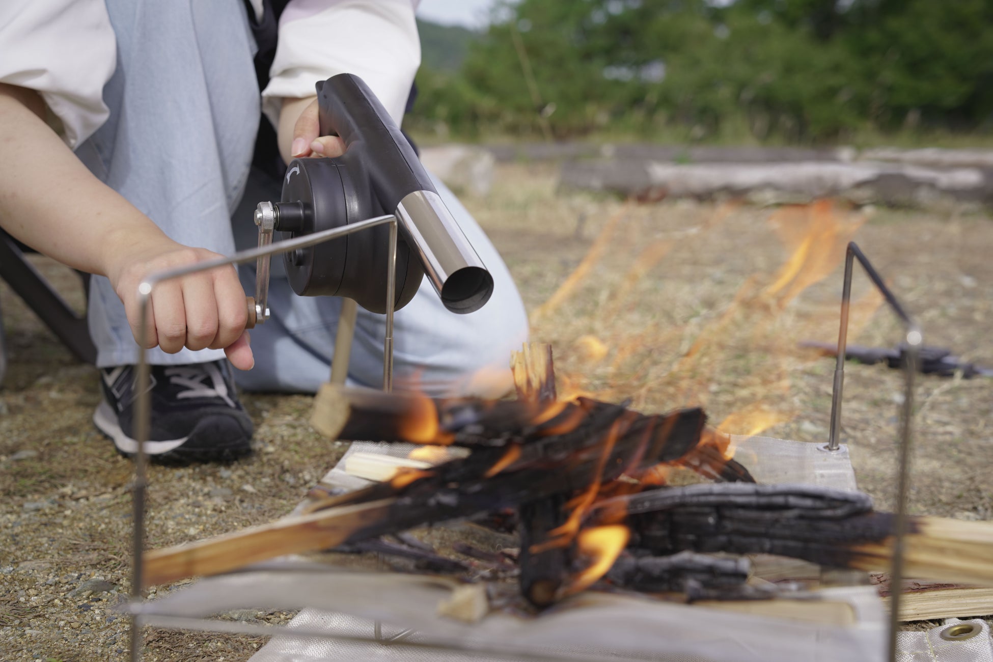 特徴:電池を使わずハンドルを回すだけで素早く送風。5枚のY型金属羽を搭載してパワフルな送風が可能です。またガンタイプなので狙った場所にピンポイントで送風して、火起こしや火力調整をしっかりとサポート。BBQやキャンプにぴったりのアイテムです。
