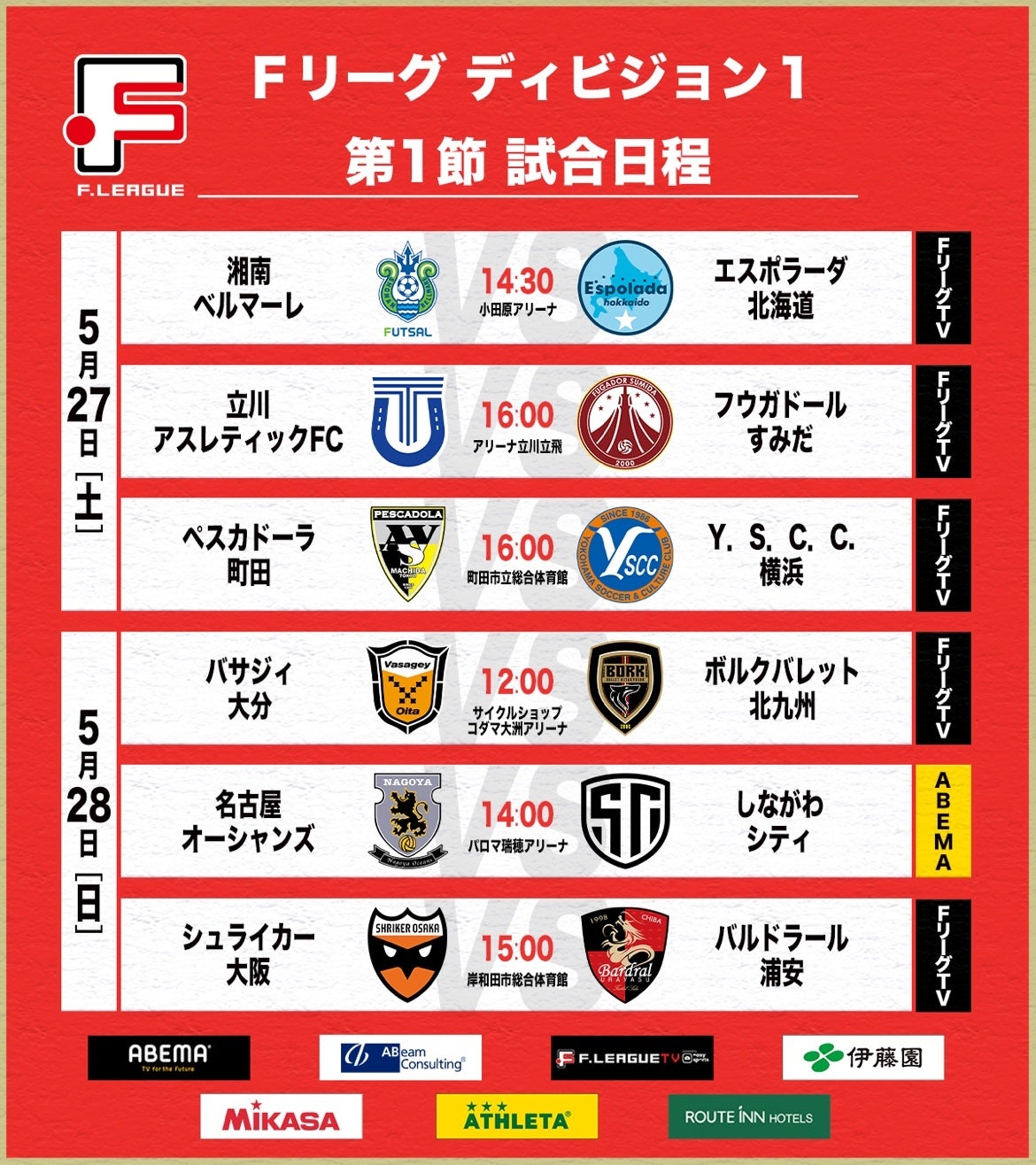 また、昨シーズン6年連続15回目の優勝を決めた名古屋オーシャンズは、昨シーズン悲願のディビジョン1昇格を決めたしながわシティと対戦。前年ディビジョン1王者とディビジョン2王者のゲームとなり、両チームともチャンピオンとしての意地とプライドが見える好ゲームに期待です。