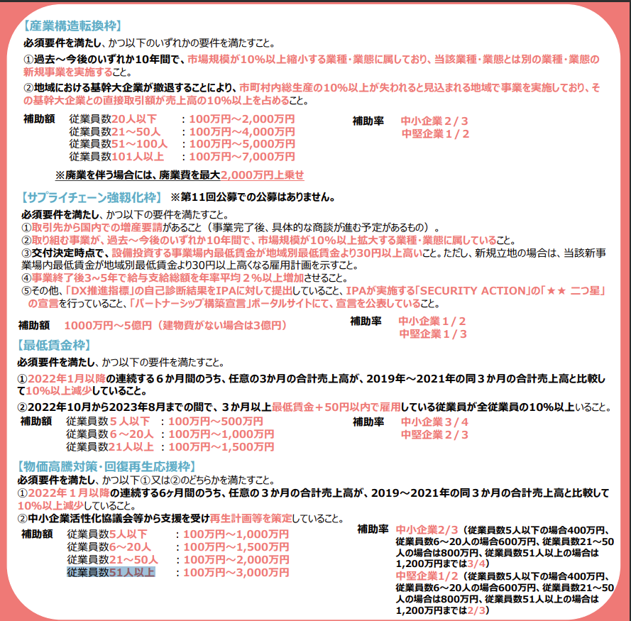 AMSが多くサポートしている「物価高対策・回復再生応援枠」では、従業員数51人以上の場合は最大3,000万円を補助額として申請することも可能。