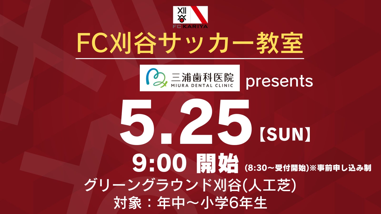 5月25日(日)11時kick offにて開催される第60回東海サッカーリーグFC刈谷vs藤枝市役所サッカー部戦前にFC刈谷サッカー教室 三浦歯科医院presentsの開催をお知らせいたします。
