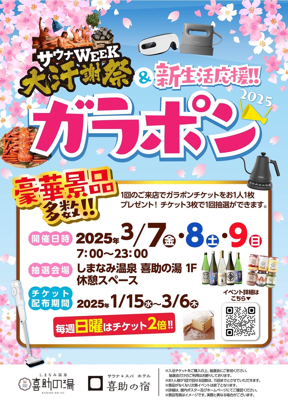 ■サウナの日 喜助の湯無料招待(3月7日)・サウナガチャ登場!