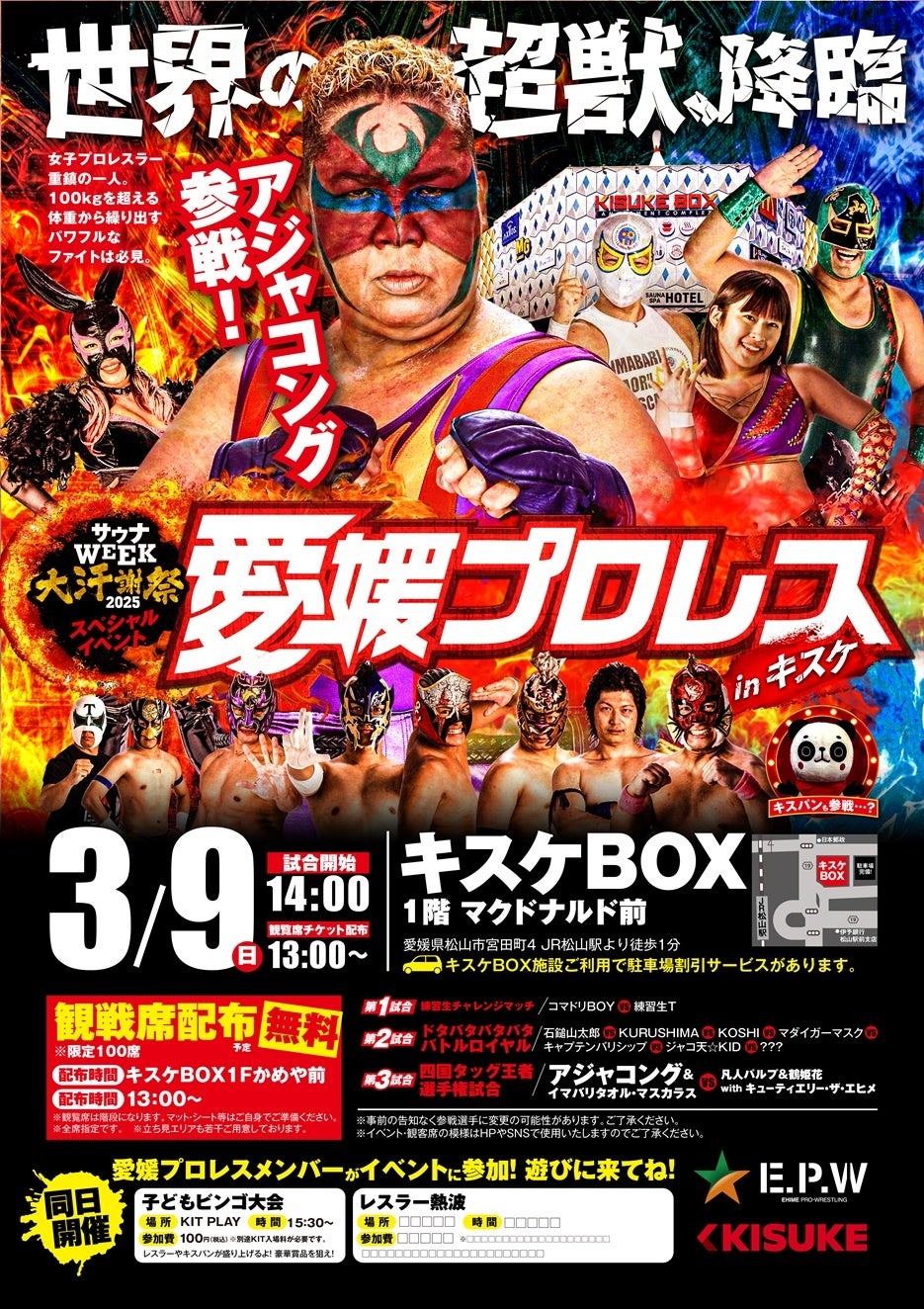 ■※松山店のみ 世界の超獣・アジャコングが降臨!愛媛プロレスinキスケBOX(3月9日)