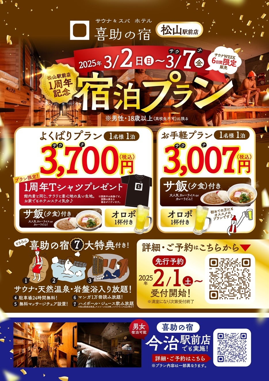 「伊予の湯治場 喜助の湯」が、ニフティサウナランキング全国1位を2年連続で獲得したことを記念して始まった大還元祭。今年も3月7日(サウナの日)に合わせて開催します。