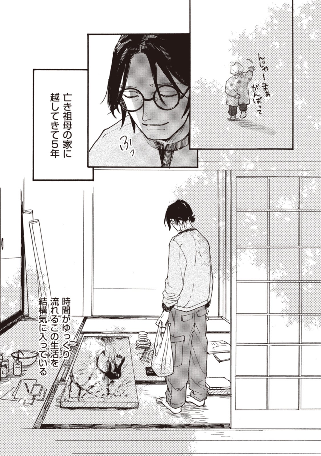 亡くなった祖母の家で暮らす日本画家。