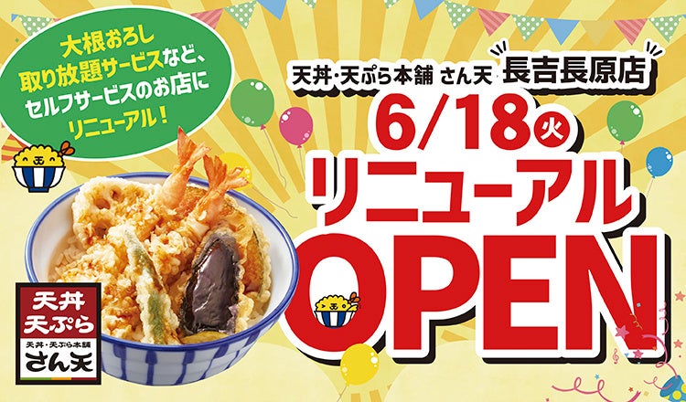 【天丼・天ぷら本舗 さん天】長吉長原店が6月18日(火)リニューアルオープン!