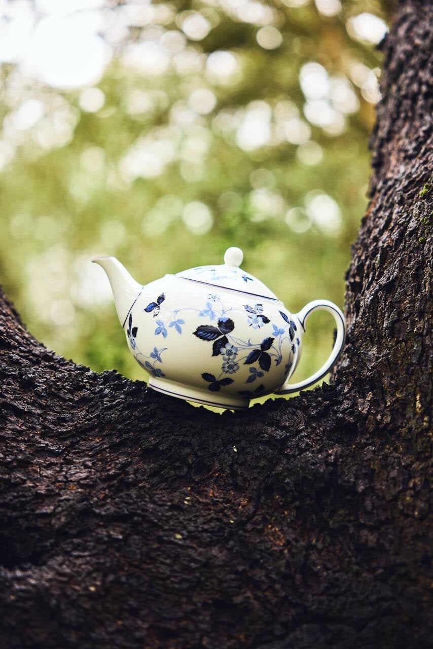 例えば、自然の中でもティータイムを。クラシックなデザインに新たな息吹を吹き込まれた 「ストロベリー インクブルー」は、従来のルールに縛られることなく、創造的な人生を楽しもうと誘います。