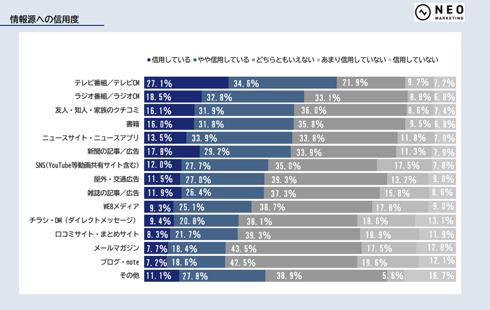 Z世代であっても、テレビやラジオといった従来のマスメディアへの信用度合いは比較的高いことが分かります。