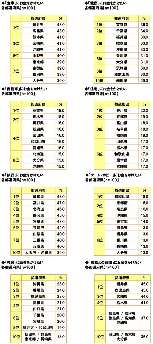 ◆家族との時間にお金をかけたい 1位「福井県」「鹿児島県」