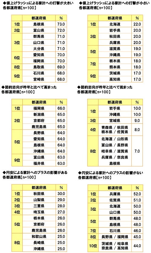 ・値上げラッシュによる家計への打撃が大きい 1位「島根県」