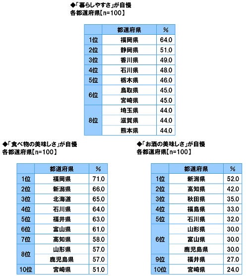 ・暮らしやすさ・食べ物の美味しさ自慢 No.1は福岡県