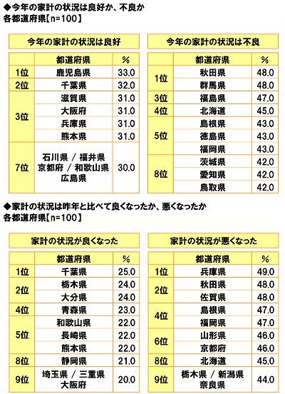 ◆今年の家計の状況 “良好”1位は「鹿児島県」、“不良”1位は「秋田県」「群馬県」