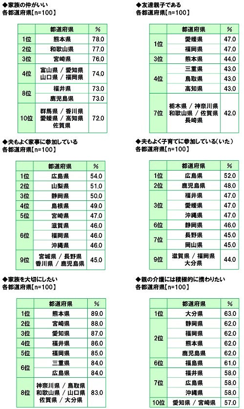 ◆仲良し家族が多い 1位「熊本県」、友達親子が多い 1位「愛媛県」「福岡県」