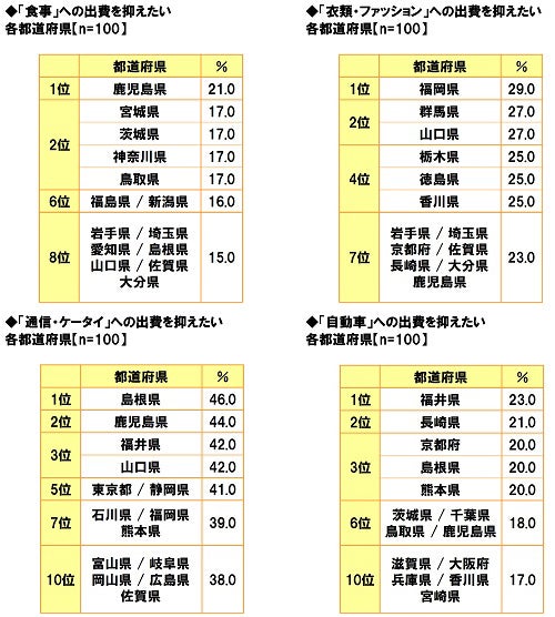 ◆食事への出費を抑えたい 1位「鹿児島県」