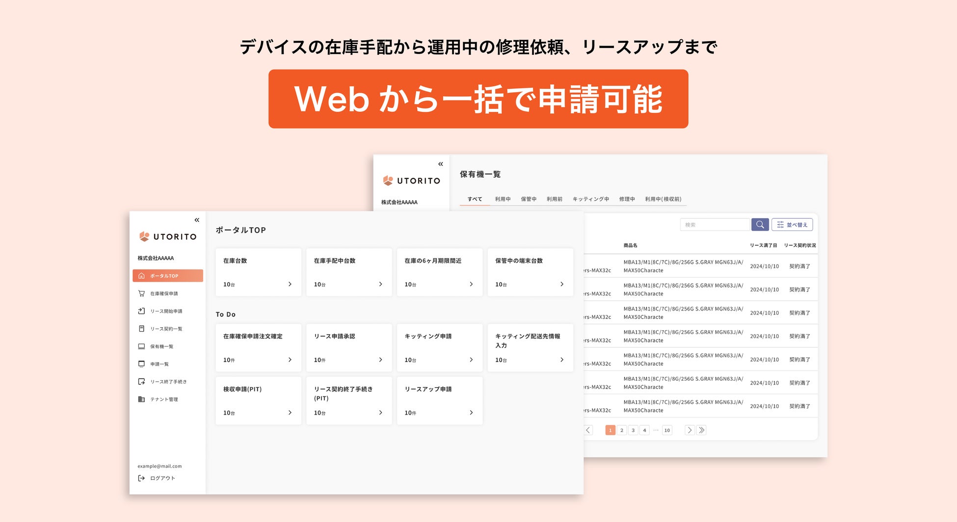 ・UTORITOで利用中のデバイス情報を一元管理する台帳機能