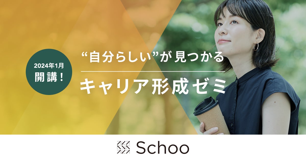 インターネットでの学びや教育を起点とした社会変革を行う株式会社Schoo(本社:東京都渋谷区、代表取締役社長CEO:森 健志郎、以下「スクー」)は、2024年1月に「キャリア形成ゼミ」を開講します。独自のメソッドでキャリアに寄り添い、自分らしさを大切にしながらこれからの10年間のキャリアプランが明確になる集合型の学習講座です。