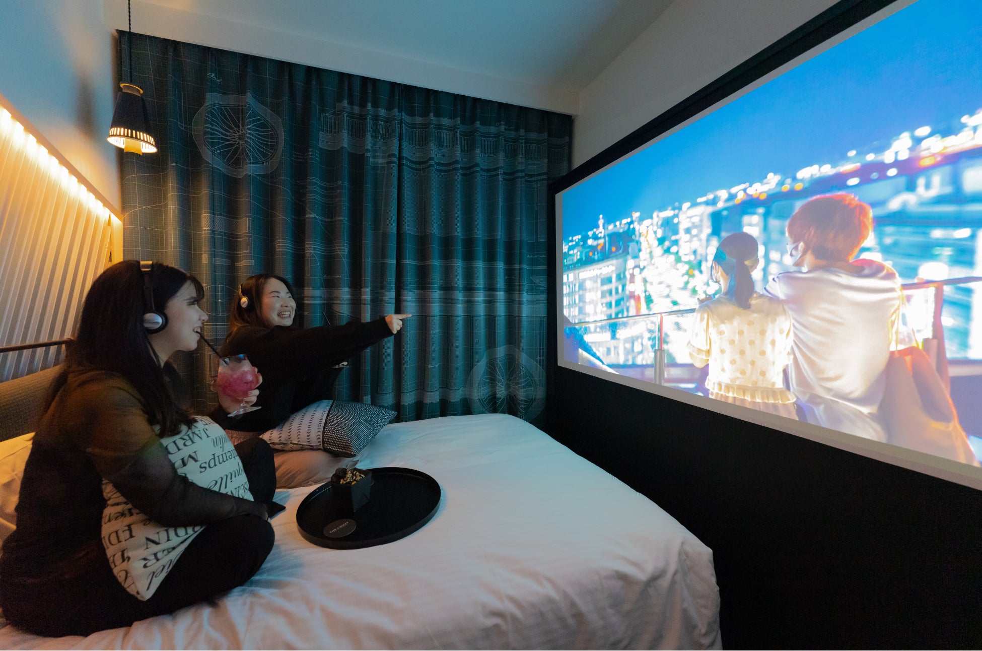 おすすめの部屋タイプは、80インチの大画面スクリーンが設置されたシアターダブルルーム。映画やライブ鑑賞をしながら、時間を気にせずゆっくりとスイーツを楽しめます。観光の後は、ホテル内で思い出に残る時間をお過ごしください。