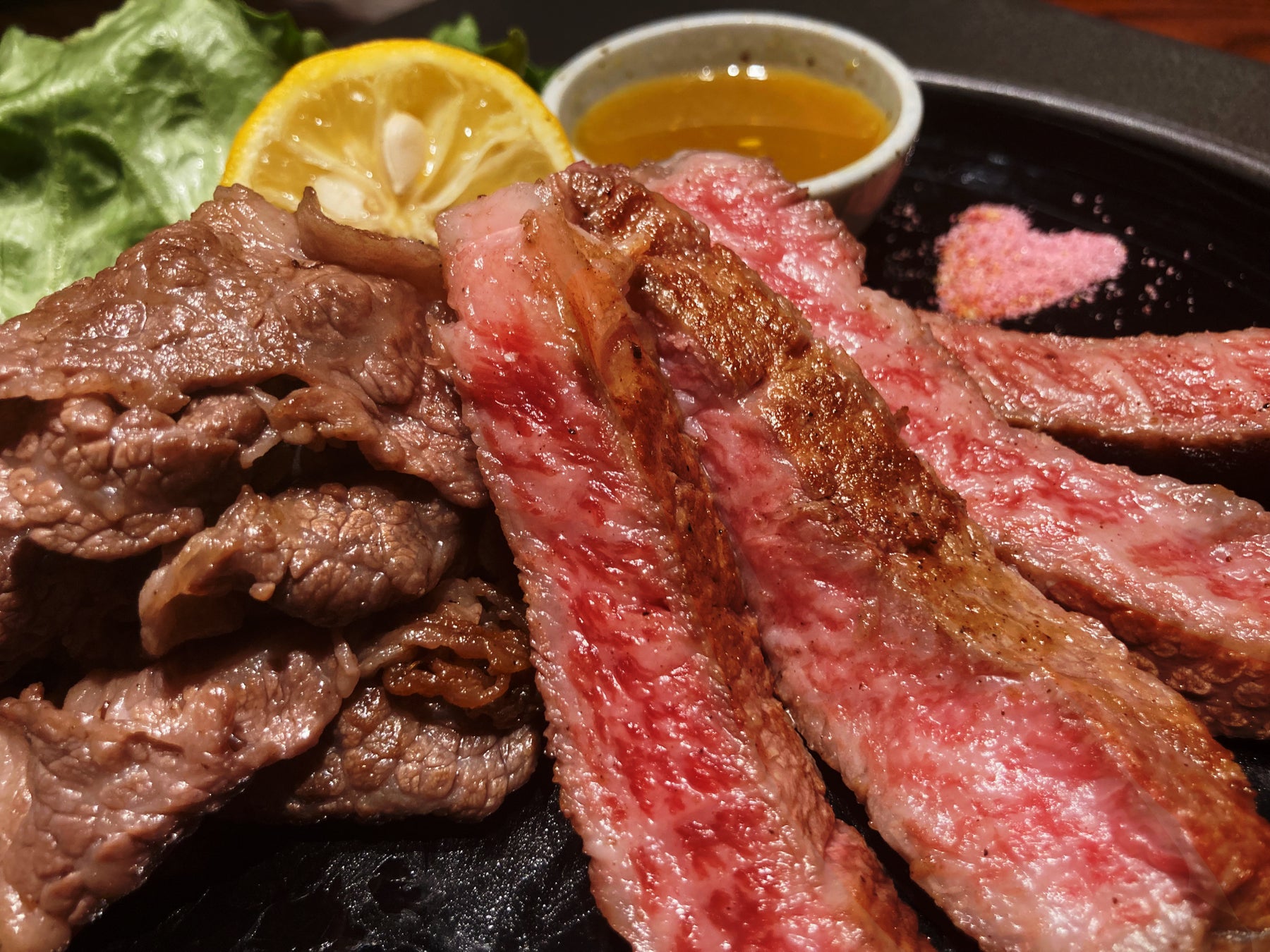 沖縄もとぶ牛の島まーすステーキとすき焼き風肉のがちまやー盛り