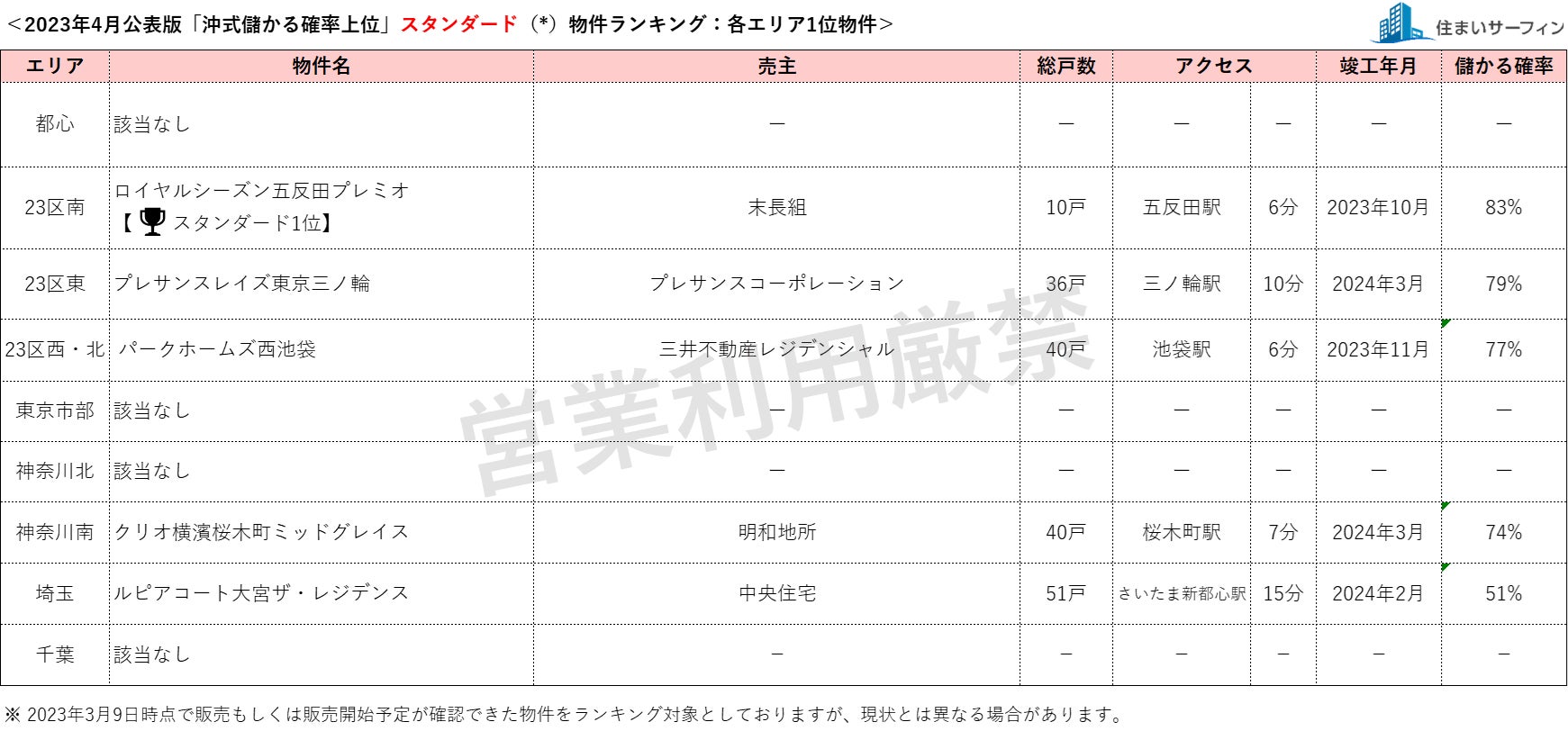 4月公表分は、2023年3月9日時点で販売もしくは販売予定が確認できた物件を対象としています。