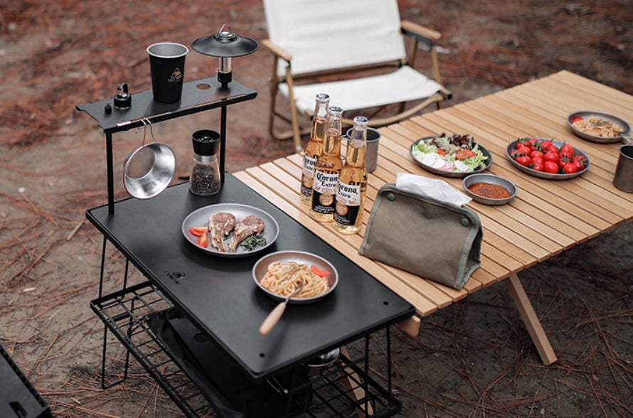 外で食べるご飯がおいしいこの季節。小物を探す手間を省きながら、調理から盛り付けまで自宅のキッチンのようにスムーズに行うには「見せる収納」に注目です。