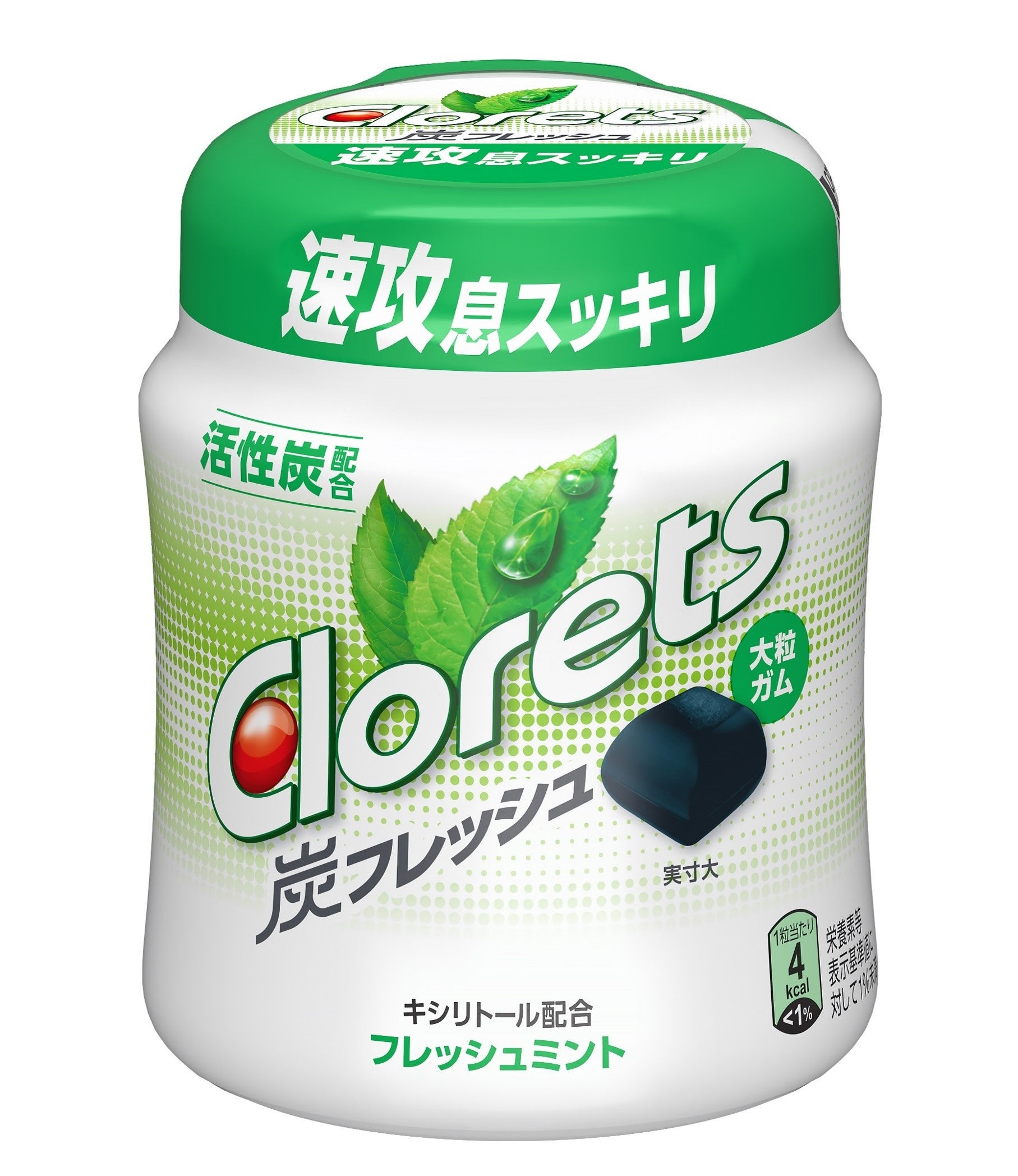 無味無臭の活性炭を配合した大粒の「クロレッツ 炭フレッシュ」で速攻息スッキリ!