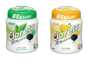 リピーター続出の大好評、活性炭配合の大粒クロレッツ まだ試していない人に、おいしさ際立つクリアで爽やかな新パッケージでアピール