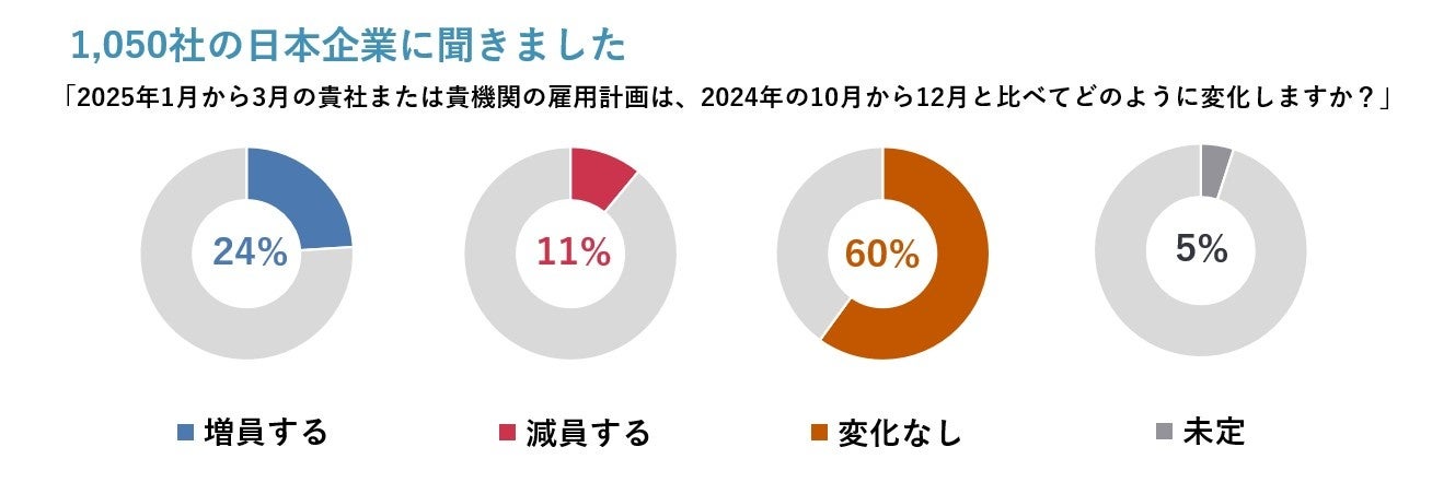 「2025年1-3月において、貴社または貴機関の雇用計画(契約社員、派遣社員などを含む) は今期(2024年10-12月)と比べてどのような変化がありますか?」 |