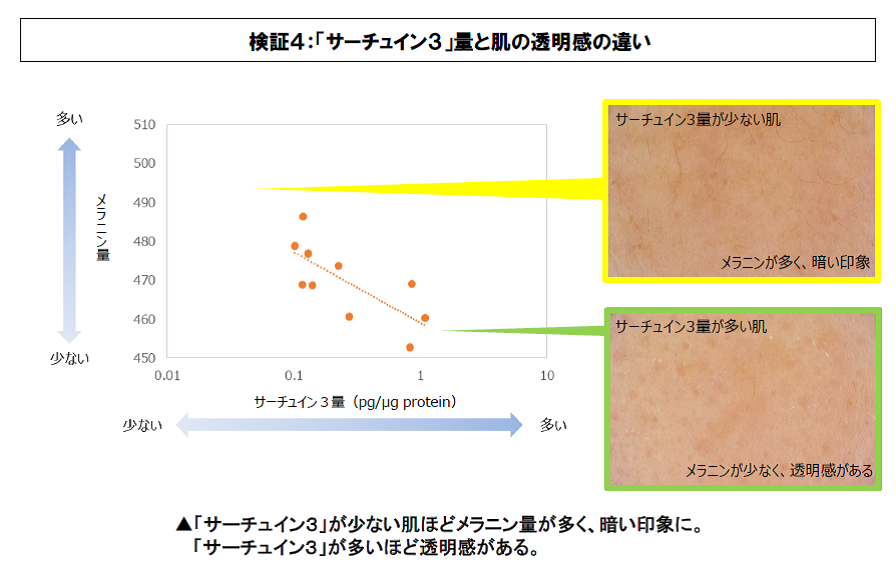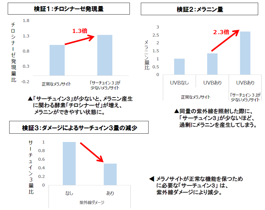 本結果より、「サーチュイン3」の量を増やすことが大人の肌で新たなシミ発生を抑制するアプローチとなる可能性が示唆されました。