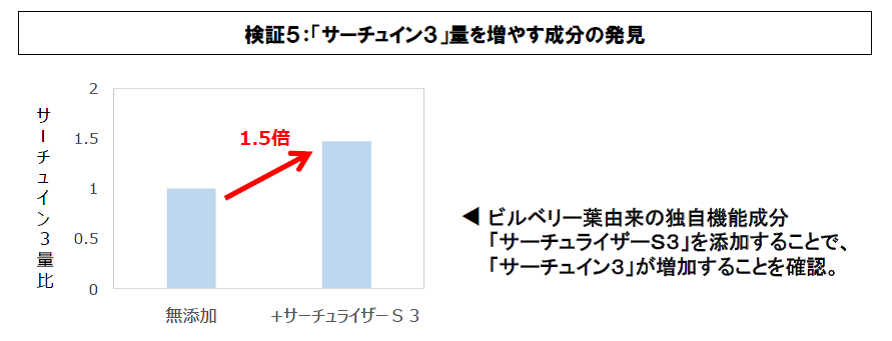 さらに、「サーチュイン3」を増やす成分としてビルベリー葉由来の独自機能成分「サーチュライザーS3」を発見しました。