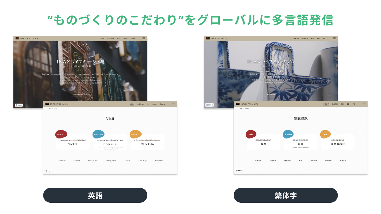 LIXIL が運営する、INAXライブミュージアム公式サイトを WOVN.io で英語・繁体字に対応しています。対応言語は、特にアクセスの多かった2言語を選定しました。