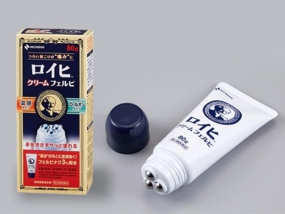 「ロイヒ(TM)クリーム フェルビ」は、痛みのもとに直接効く有効成分「フェルビナク」を3%配合した、温感タイプの鎮痛消炎クリーム剤です。クリーム剤では初めて※のロールオンタイプで、手を汚さずに患部に直接塗ることができます。(※当社調べ)