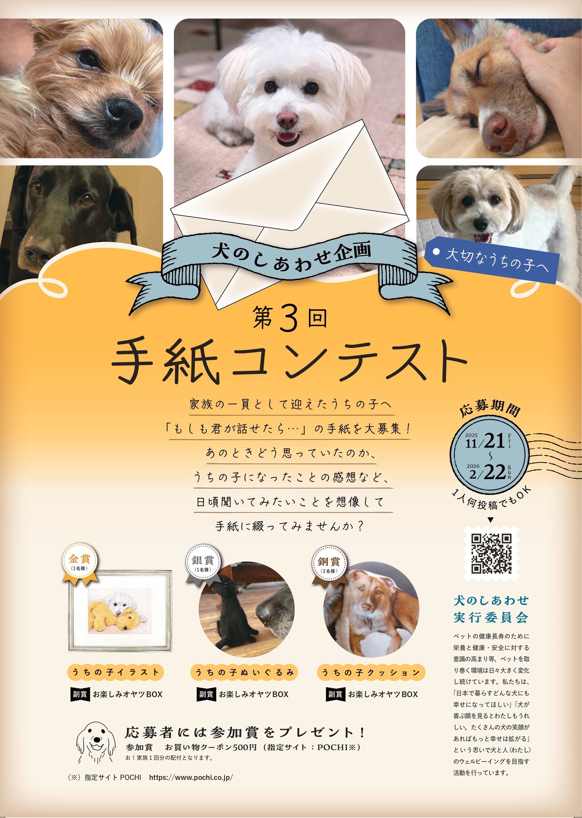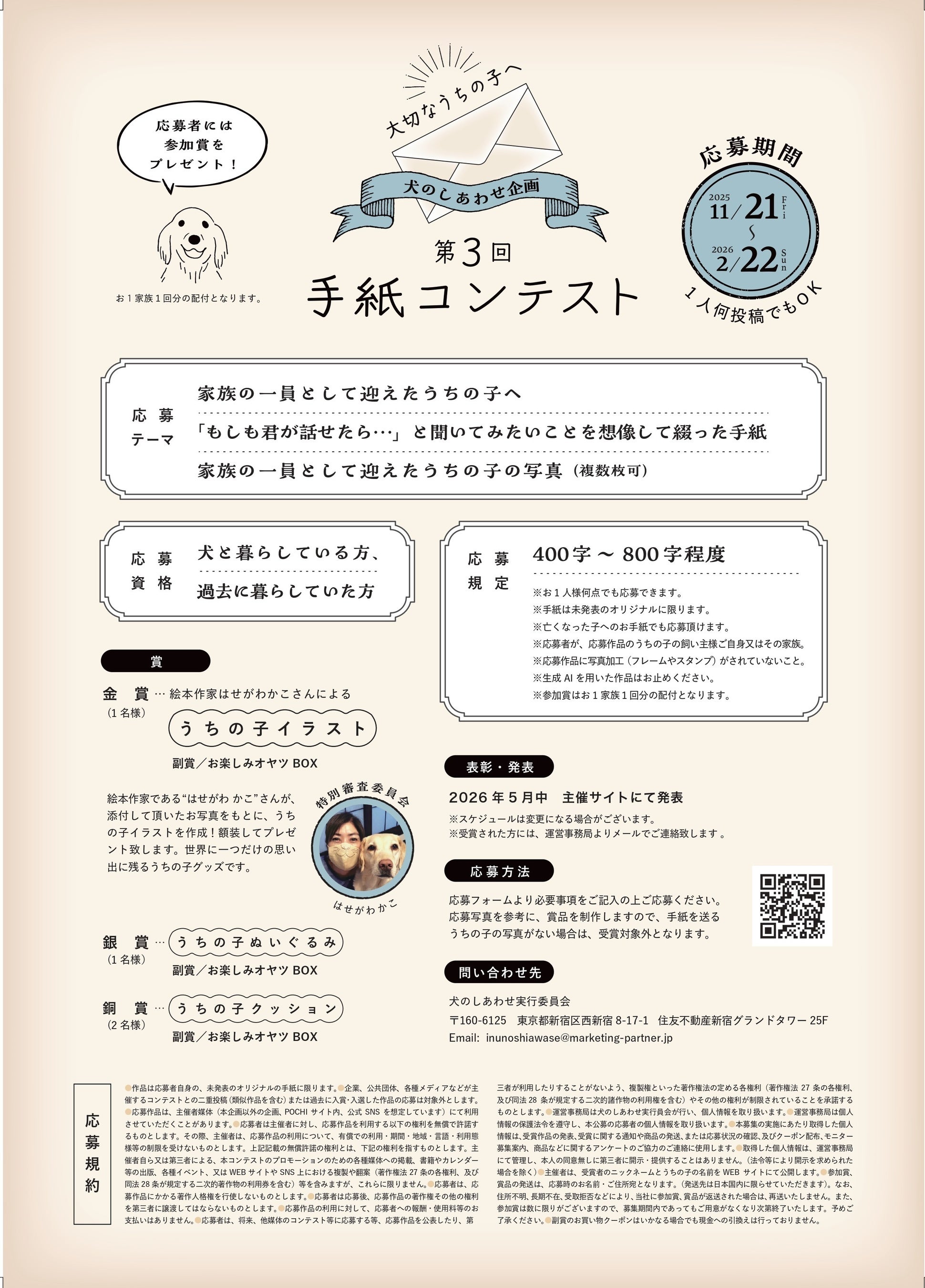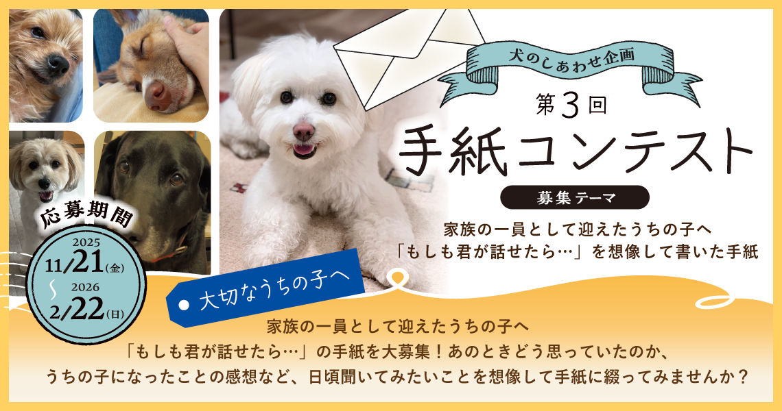 犬のしあわせ実行委員会は、2025年11月21日(金)より「第3回 手紙コンテスト」の募集を開始します。大切なうちの子(犬)へ「もしも君が話せたら…」を想像して書いた手紙を綴ってみませんか?