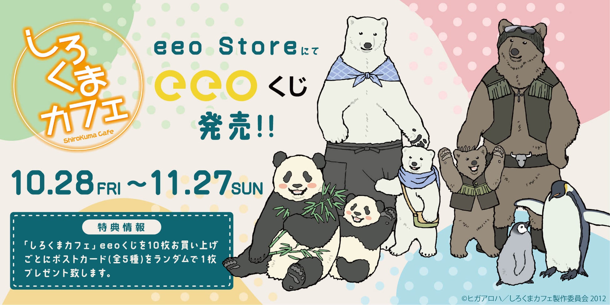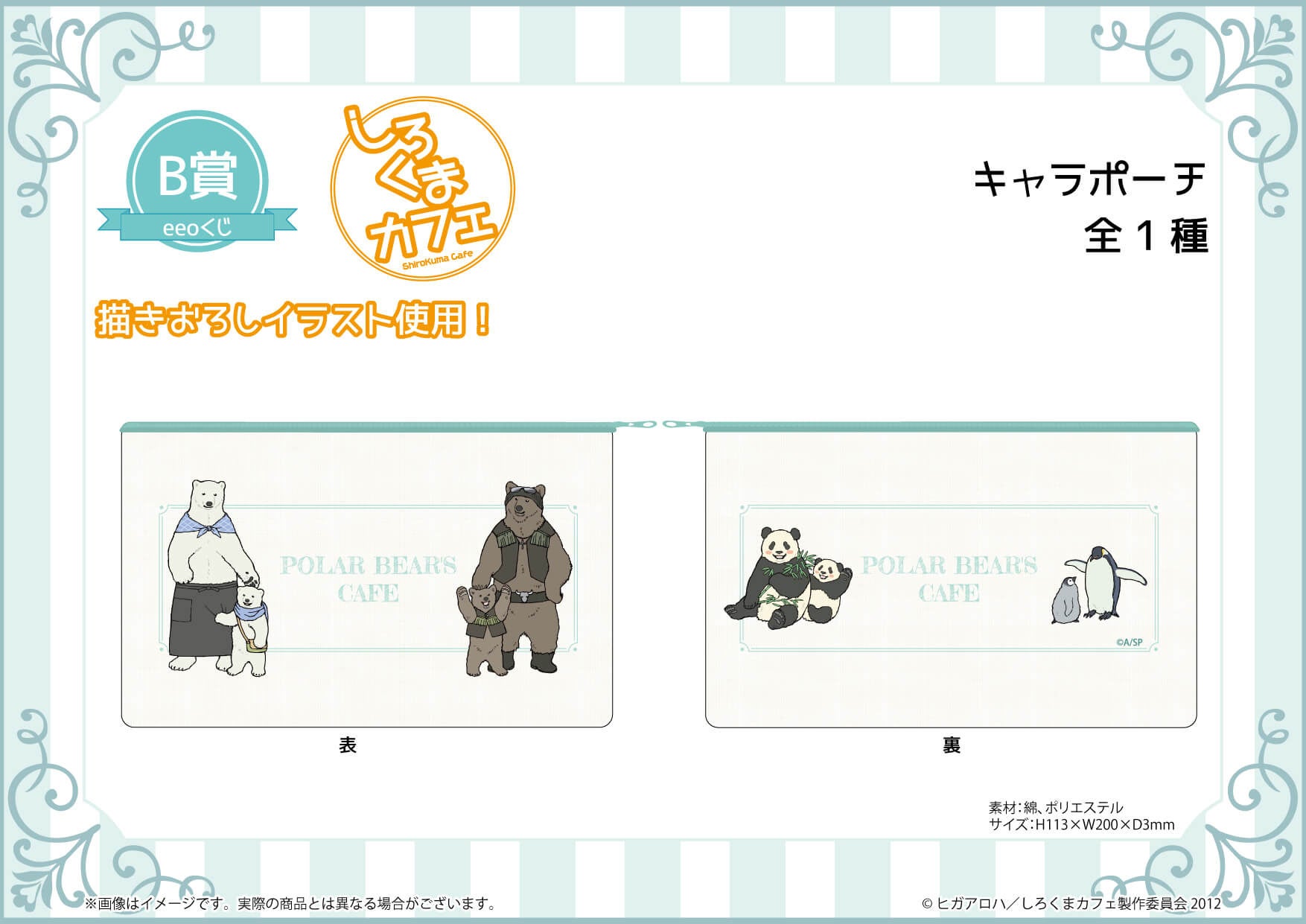 TVアニメ『しろくまカフェ』のオンラインくじ「eeoくじ」が登場! シロクマくんやグリズリーさんたちが描かれたB2タペストリーやキャラポーチなどの新作グッズが景品に