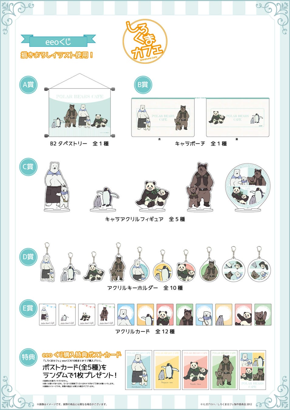 TVアニメ『しろくまカフェ』の「eeoくじ」には、A賞からE賞までの景品が登場します。