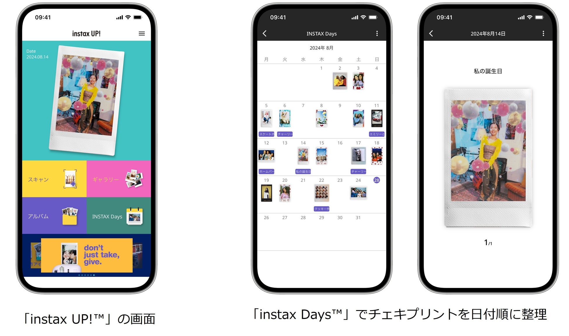今回のバージョンアップでは、撮影したチェキプリント™にイベント名をつけて、オリジナルのカレンダーを作成できる新機能「instax Days™」を新たに搭載。スキャンしたチェキプリント™や、「Link 3」アプリから転送したチェキプリント™を、日付順に整理し、思い出を振り返ることができます。また、作成したカレンダーを「instax UP!™」から直接SNSに投稿し、より多くの友人と共有するなど、チェキプリント™の楽しみ方を広げます。