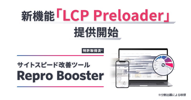 マーケティングソリューションの提供によりWebとアプリの収益最大化を支援するRepro株式会社(以下、当社)は、サイトスピード改善ツール『Repro Booster』のページランディング時の表示高速化する新機能「LCP Preloader」の提供を開始したことをお知らせします。