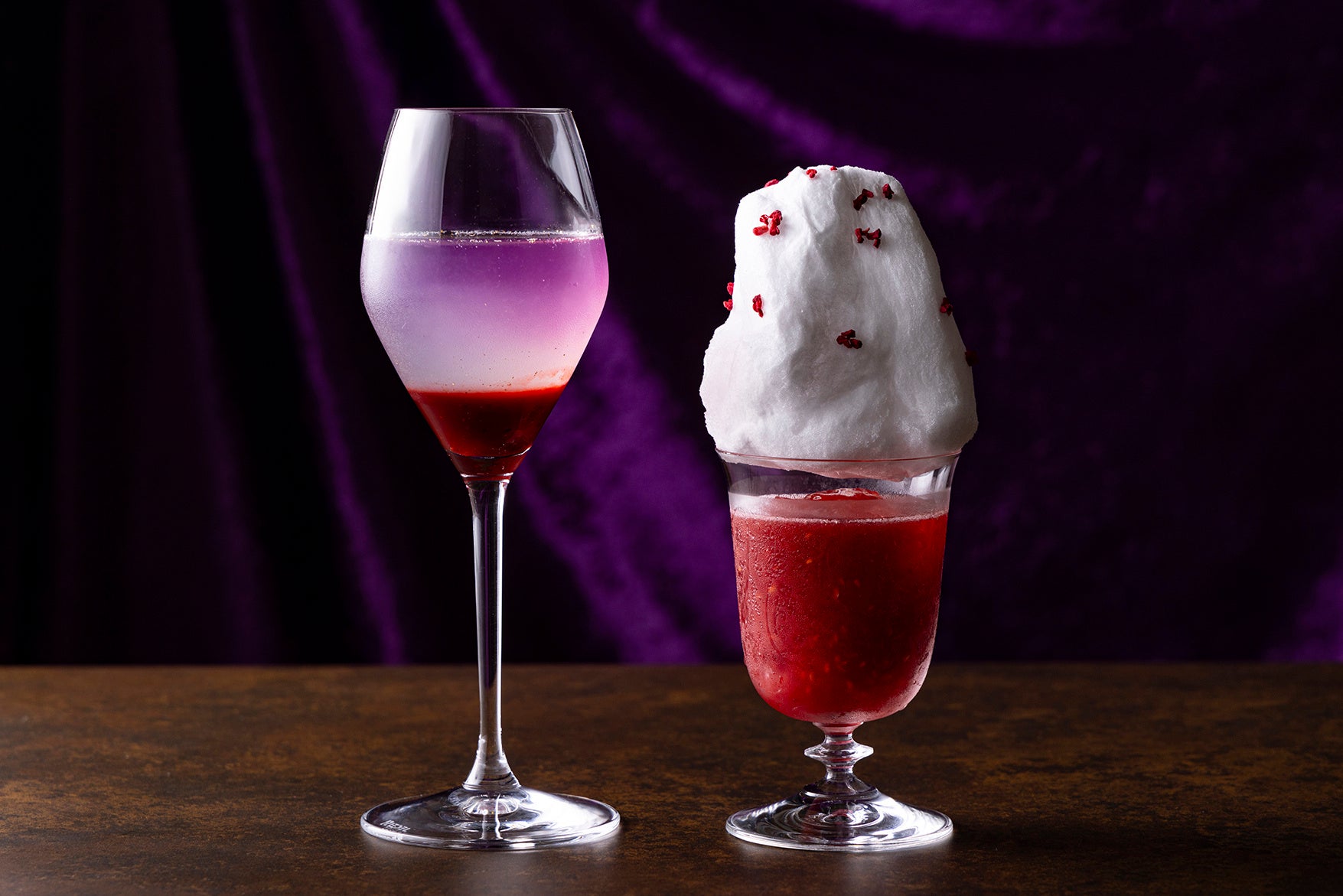 ラズベリー、レミーマルタンVSOP、サンデマン ルビーポート、オーキッドシロップ、クランベリージュース、わたあめ、ドライラズベリー