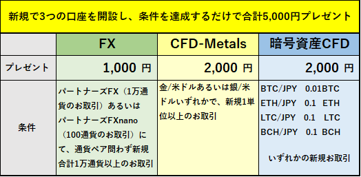 新規口座開設と条件達成で合計5,000円プレゼント!5月の口座開設キャンペーン
