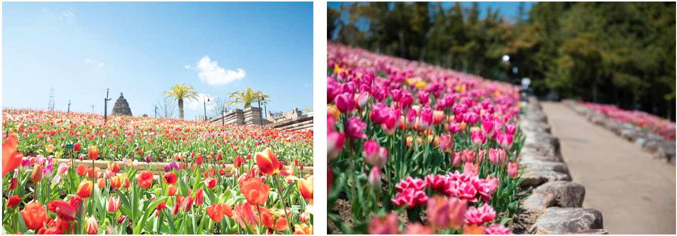 亜細亜の世界的遺産を復元した建物が並ぶ「オリエンタルトリップ」内に、個性豊かな12万本ものチューリップが咲き誇る、春ならではの風景をお楽しみいただける期間限定のイベントです。