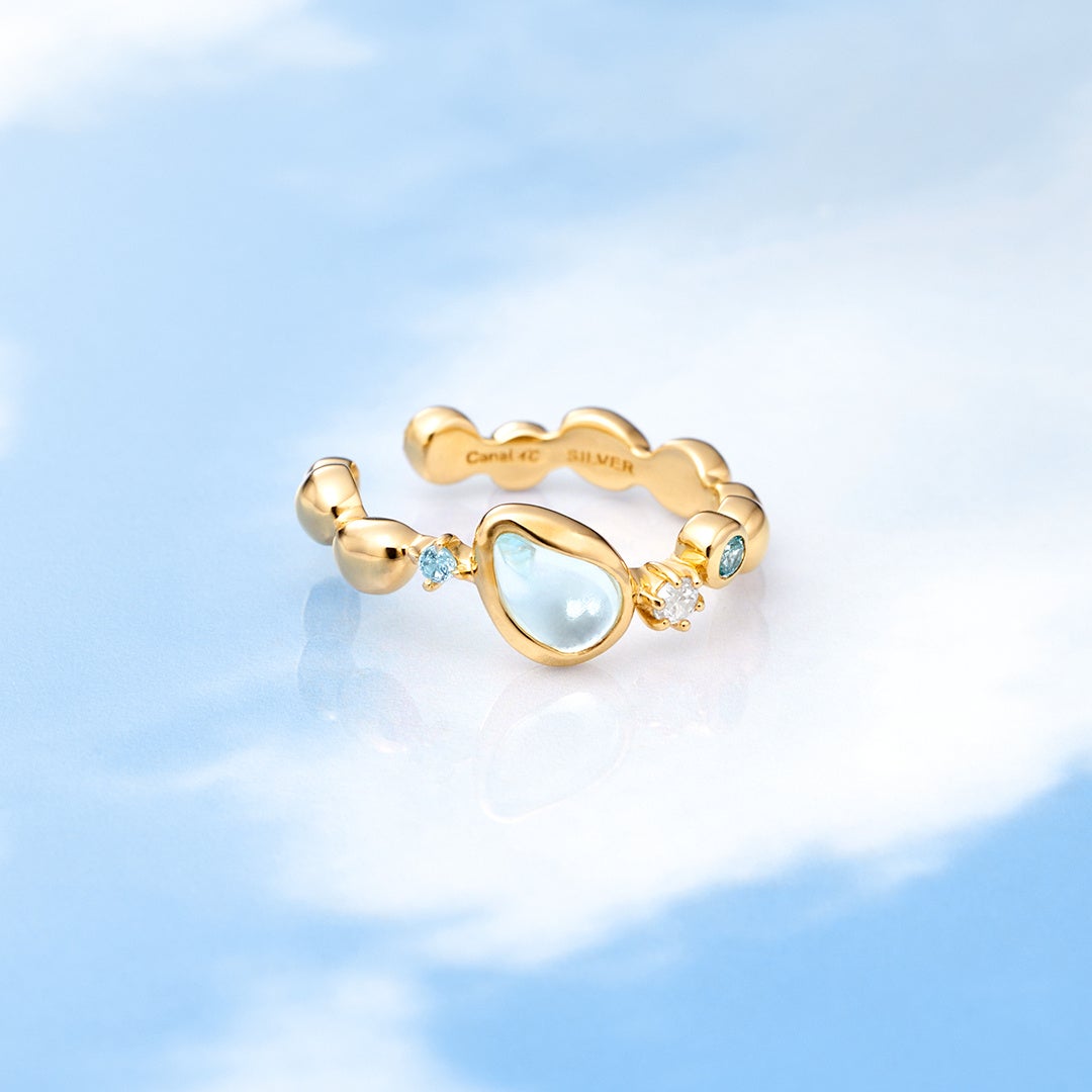 水面に反射する真夏の青空を表現した「Sky in Blue」。鮮やかなイエローゴールドにスカイブルートパーズが輝く組み合わせは、一点で主役級の存在感を放ちます。